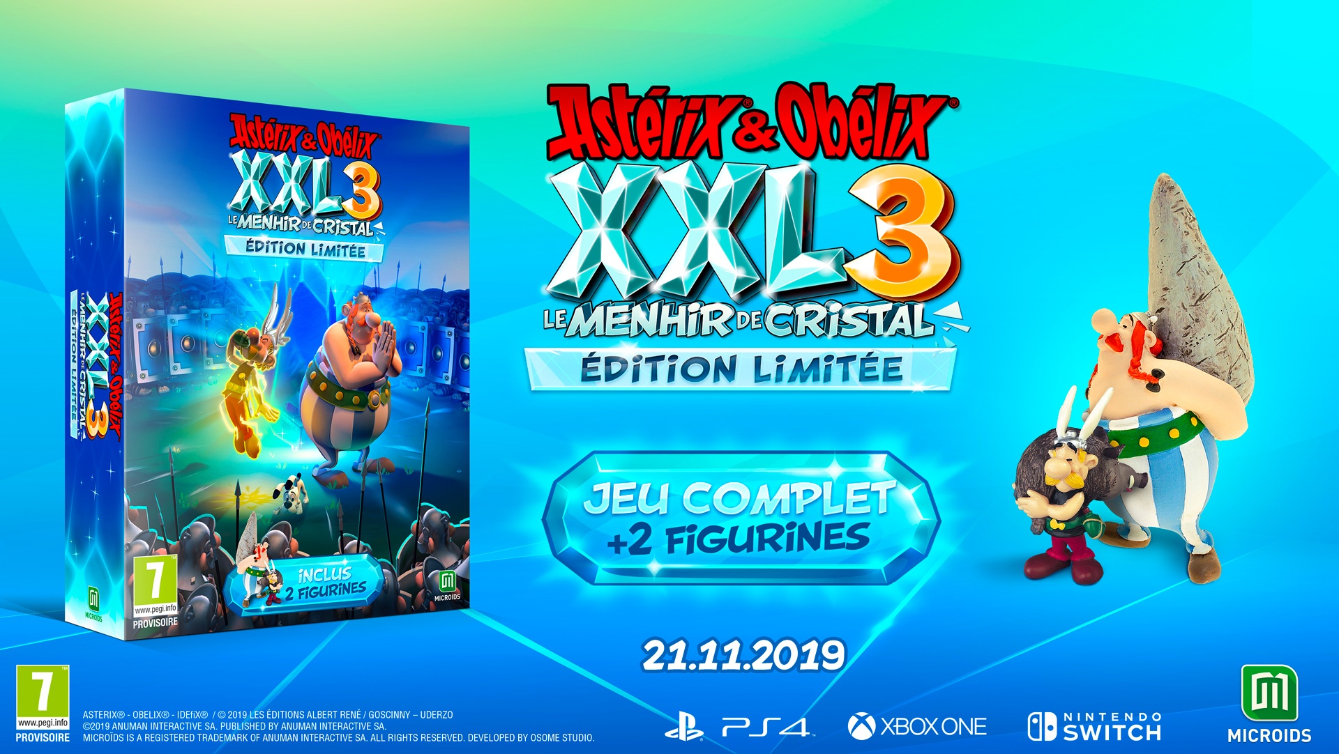 Astérix & Obélix XXL3 : Le Menhir de Cristal sera disponible dès le 21 novembre prochain, sur PlayStation 4, Xbox One, Nintendo Switch et PC/Mac.